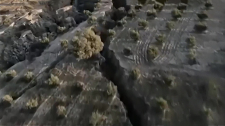 След внутренних повреждений земной коры проявился на поверхности в виде гигантских трещин. Турецкие СМИ опубликовали кадры, снятые с дрона в Хатае. В одной из оливковых рощ образовался тектонический разлом глубиной 30 метров и шириной около 200.