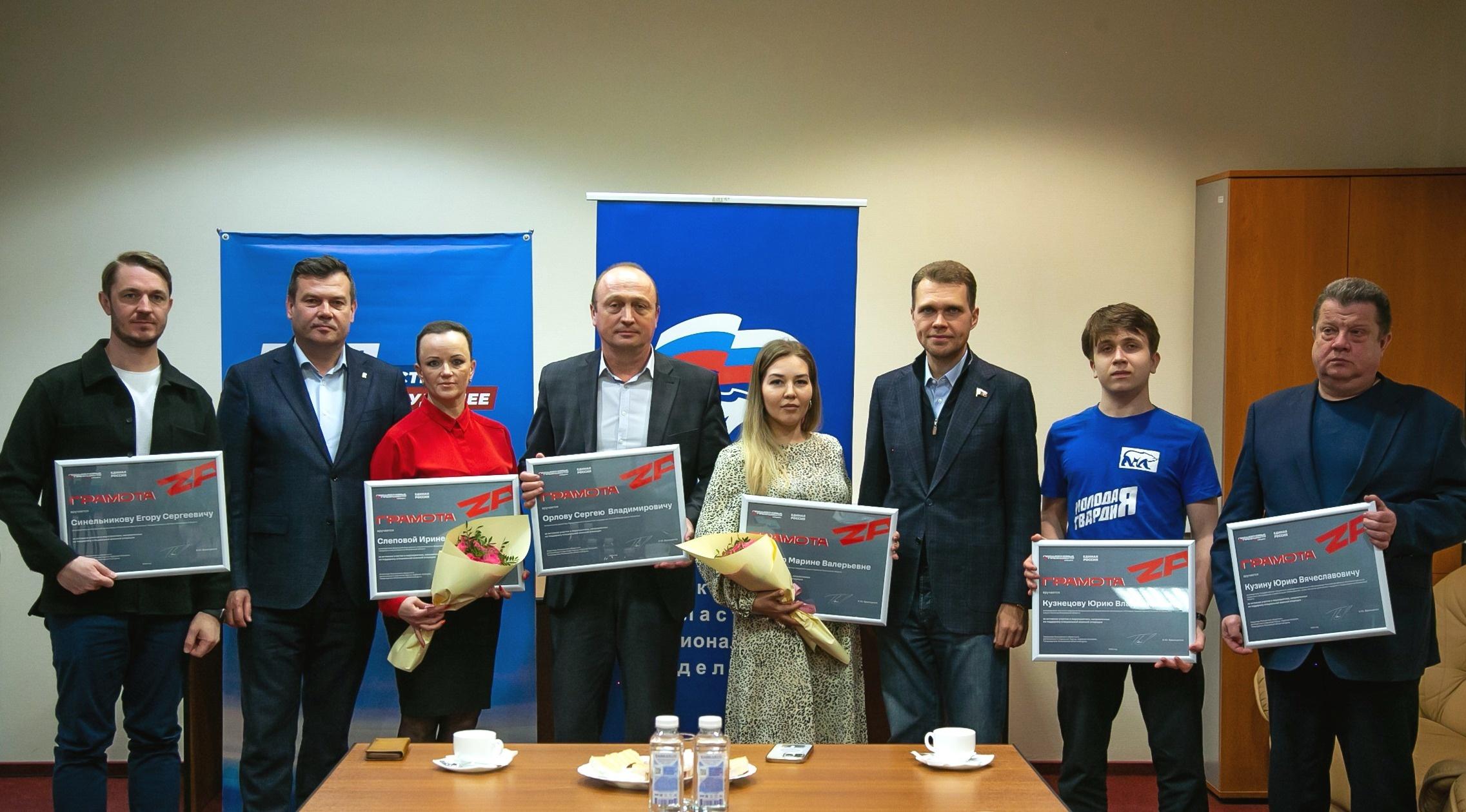 Глава Городского округа Коломна вместе с депутатом Госдумы Никитой Чаплиным наградили коломенских активистов регионального отделения «Единой России»,