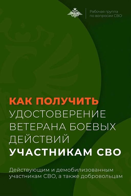 Удостоверение ветерана боевых действий могут оформить участники СВО: — военнослужащие — мобилизованные — добровольцы Подробно ознакомиться с алгоритмом получения удостоверения можно в информационных карточках.
