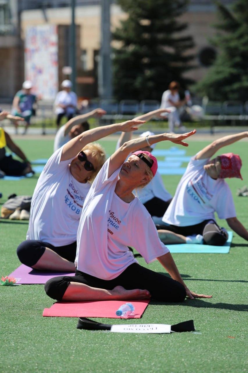 Открытая летняя площадка Конькобежного центра «Коломна» стала местом проведения областного фестиваля «Йога – источник молодости» для участников губернаторского проекта «Активное долголетие».