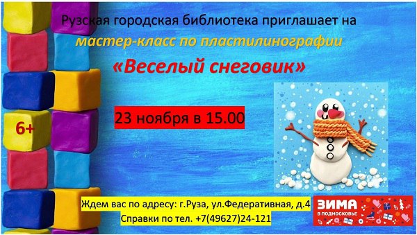 Рузская городская библиотека приглашает всех желающих на арт-лабораторию «Пластилиновые фантазии», которая состоится 23 ноября в 15:00.