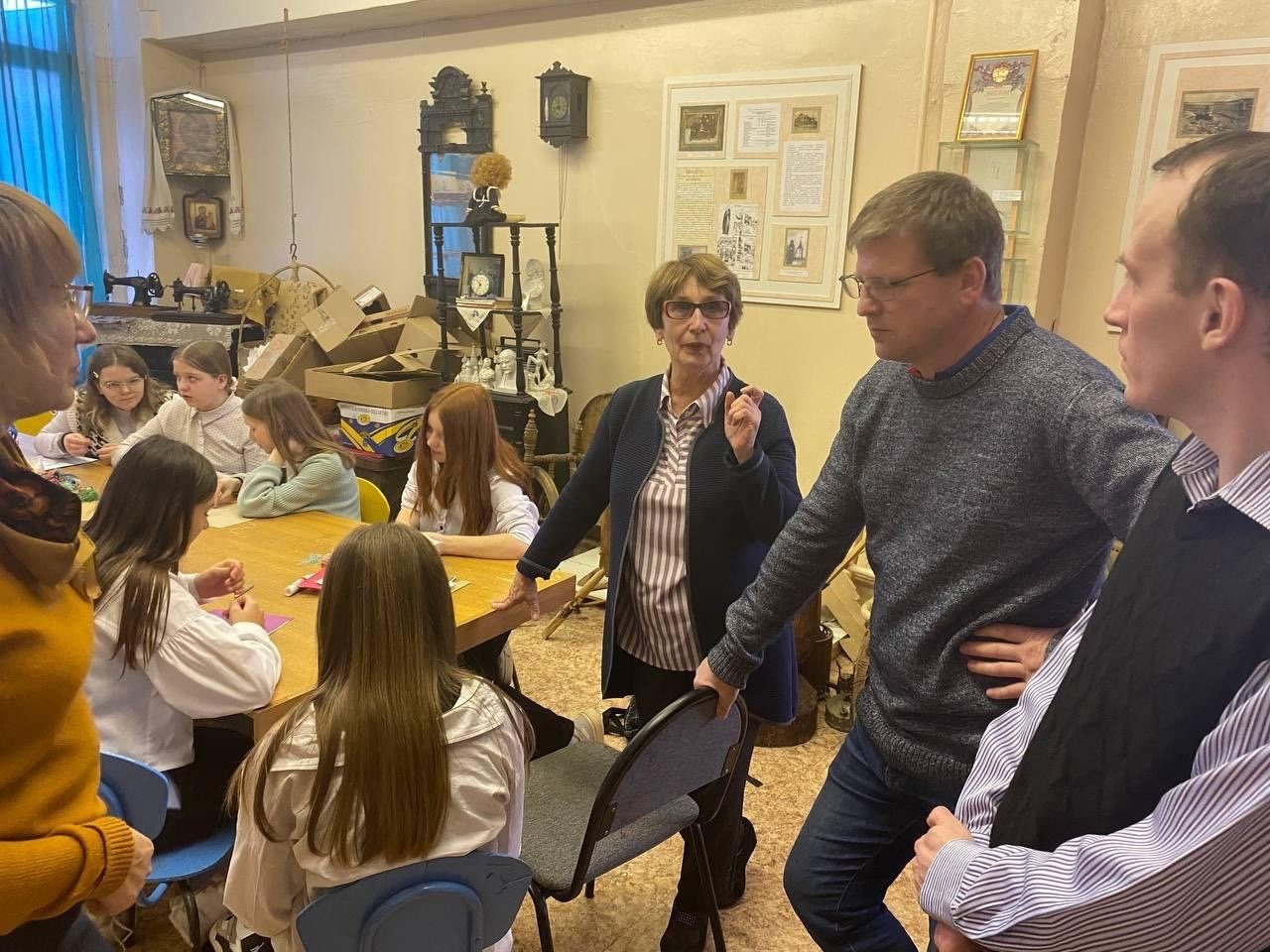 Депутат фракции Партии "Единая Россия" в Совете депутато Орехово-Зуевского округа Сергей Бородин с коллегой по депутатскому корпусу Дмитрием Травкиным провели встречу в волонтёрском центре поддержки участников специальной военной операции, организованном на базе давыдовского лицея. Дети и взрослые здесь делают заготовки для медицинских масок, повязок, средств индивидуальной защиты, собирают для отправки в зону боевых действий предметы первой необходимости. В рамках отчетной дятельности поговорили об итогах работы за 2023-й год и поделилсь планами на текущий.