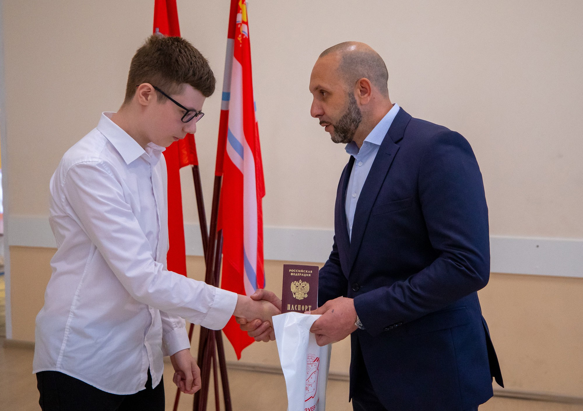 Десять юных жителей города Куровское, которым исполнилось 14 лет, получили главный документ гражданина Российской Федерации — паспорт. Его ребятам вручил глава округа Руслан Заголовацкий. Он пожелал ребятам стать достойными гражданами страны, реализовать все свои планы и мечты.