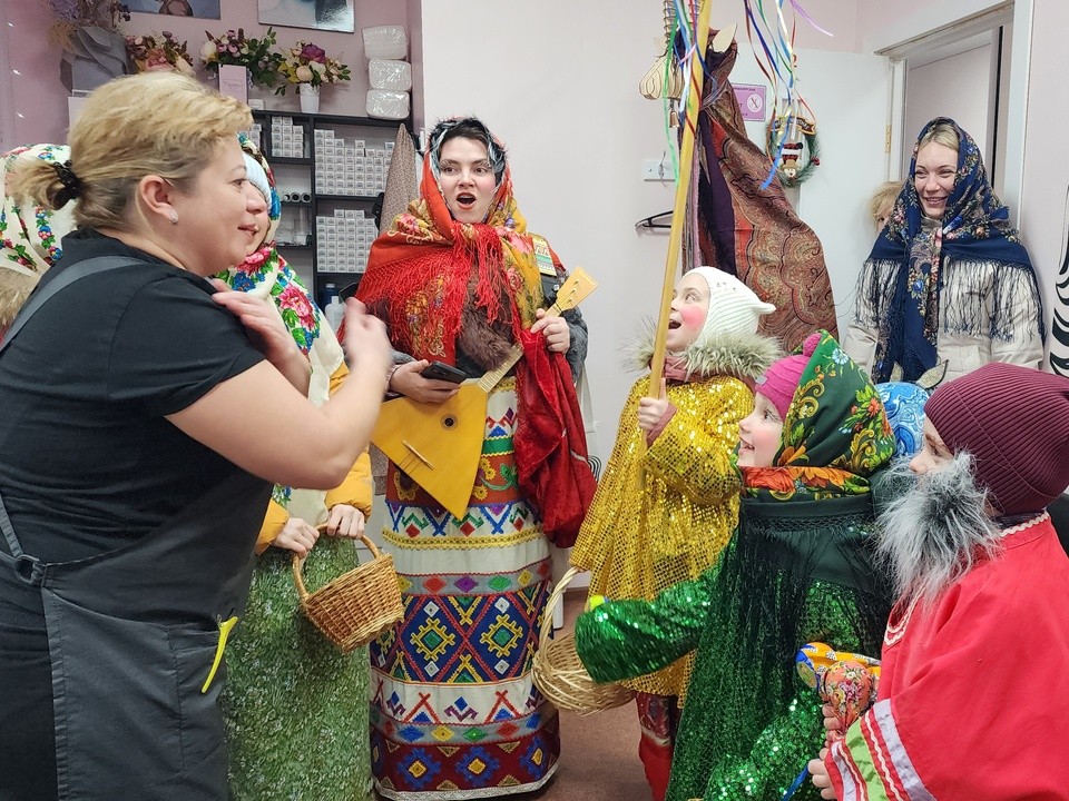 Сотрудники Дома культуры села Каринское вместе с юными местными жителями нарядились в яркие костюмы и вышли на улицу колядовать. Они прошли по домам селян и исполнили обрядовые песни.