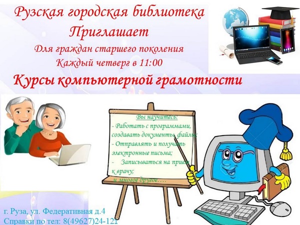 Рузская городская библиотека приглашает 26 октября жителей старшего поколения на курсы компьютерной грамотности «WEB-Эрудит». Начало в 11 часов.