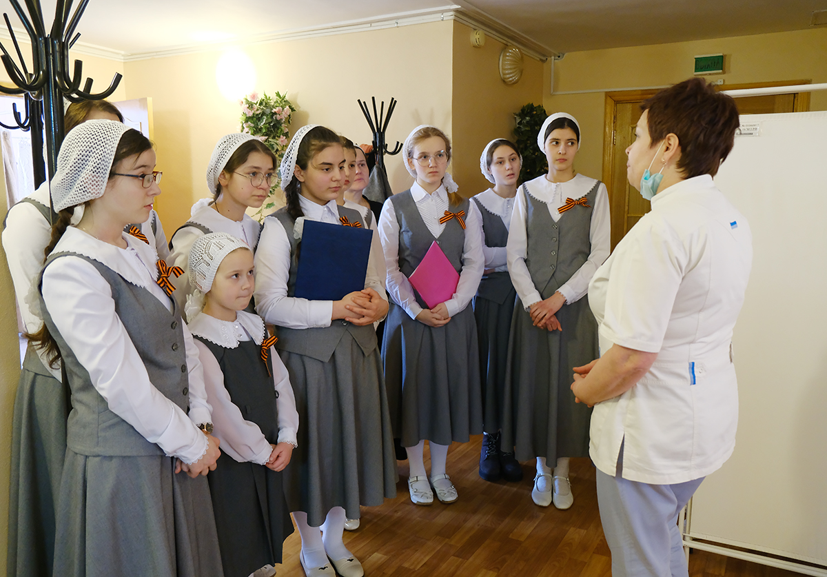 В преддверии праздника Дня защитника Отечества настоятельница Покровского Хотькова монастыря Игумения Олимпиада с сестрами и воспитанницами Детского пансиона посетила филиал №5 ФГБУ «НМИЦ ВМТ им. А.А.Вишневского» Минобороны России.